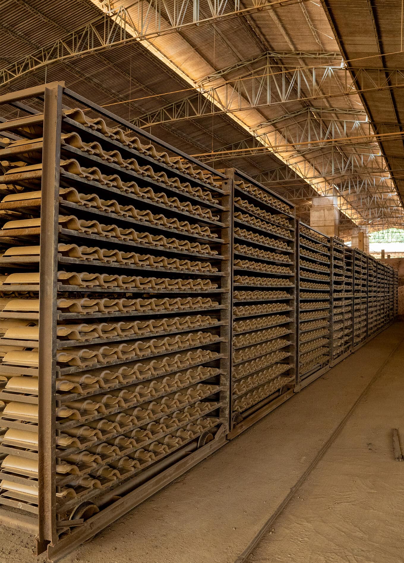 Produzimos blocos para alvenaria e laje, telhas (Plan, Portuguesa, Romana, Americana e Copeira), tijolos maciços e cobogós.